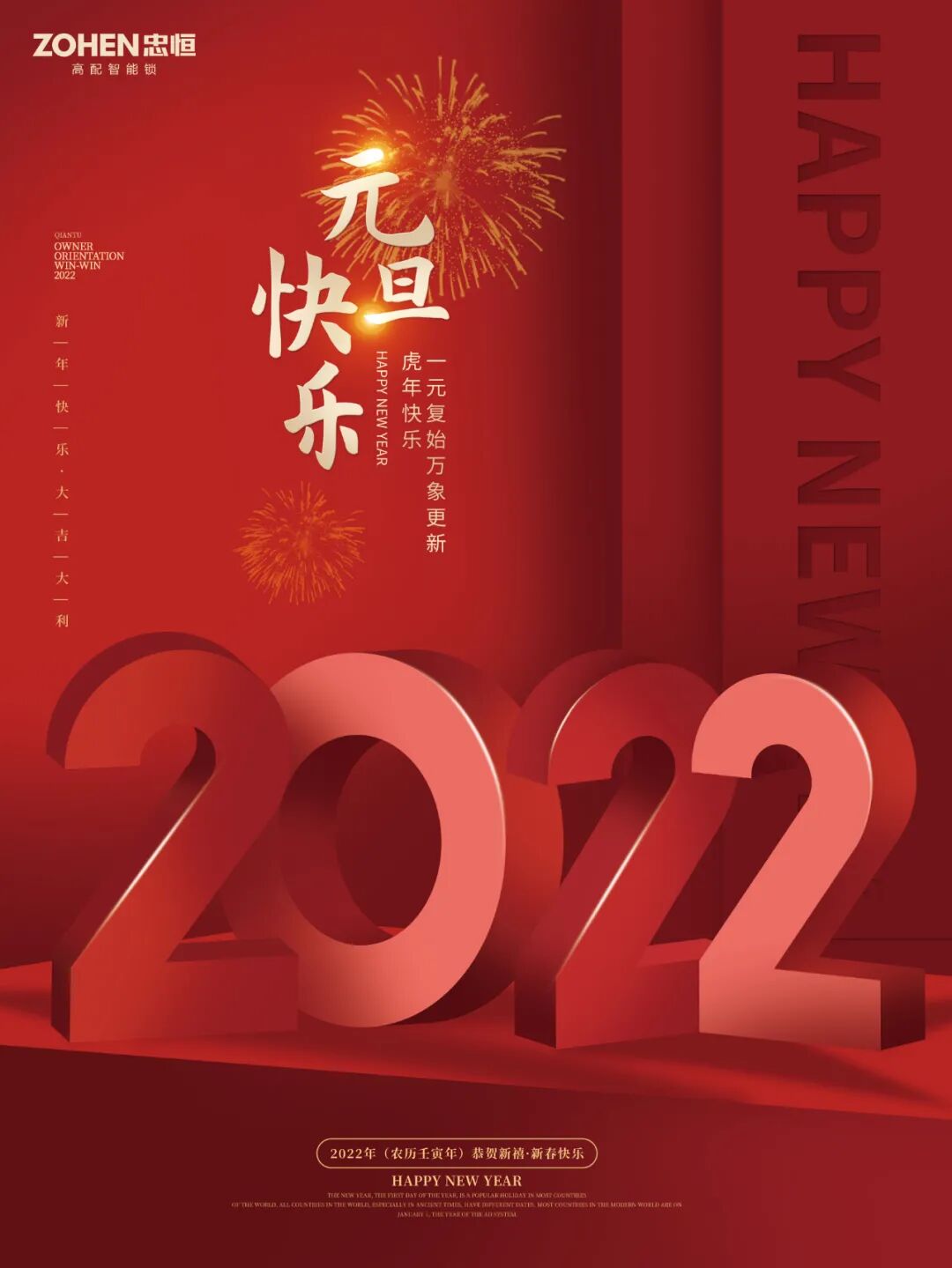 2022年了,带着家人一起开启全新的智能家居生活吧,忠恒智能门锁在新的一年里,依旧守护在您的家门口,为您保驾护航。